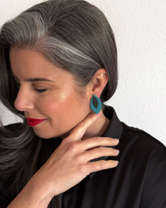 Los Candela en tonos teal y negro, inspirados en el color tendencia Transformative Teal 2026. Diseño contemporáneo con fuerza, elegancia y personalidad, hechos a mano para mujeres que no quieren pasar desapercibidas 💥