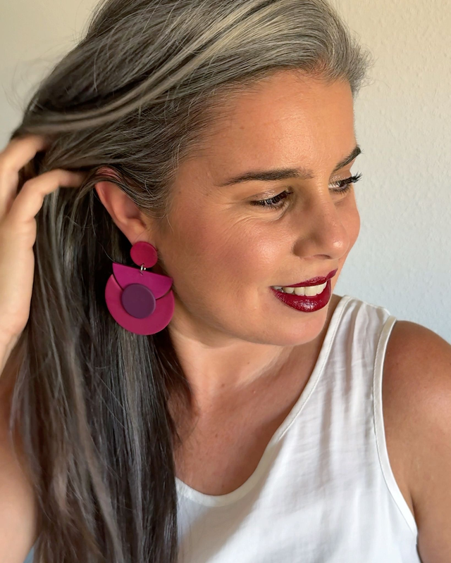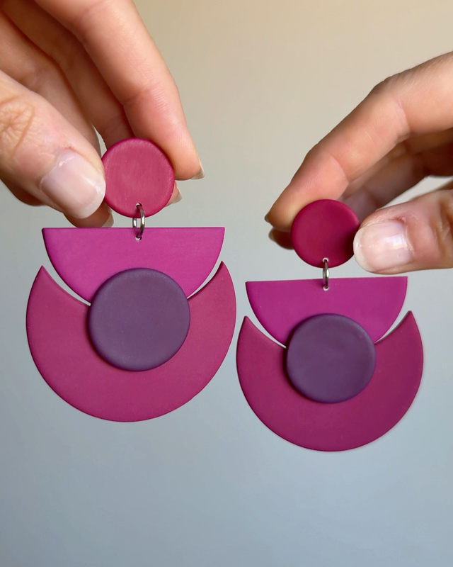 La luna 🌙 como inspiración, las formas geométricas que caracterizan a AnaAtelier y las combinaciones de colores que tanto os gustan, dan paso a unos pendientes con estilo y magnetismo únicos. Éstos en concreto, en diferentes tonos de burdeos, son de los más favorecedores.