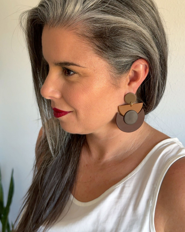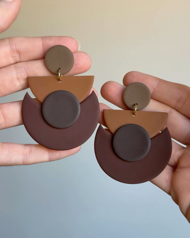 La luna 🌙 como inspiración, las formas geométricas que caracterizan a AnaAtelier y las combinaciones de colores que tanto os gustan, dan paso a unos pendientes con estilo y magnetismo únicos. Éstos en concreto, en diferentes tonos de color marrón, serán tus aliados en otoño-invierno.