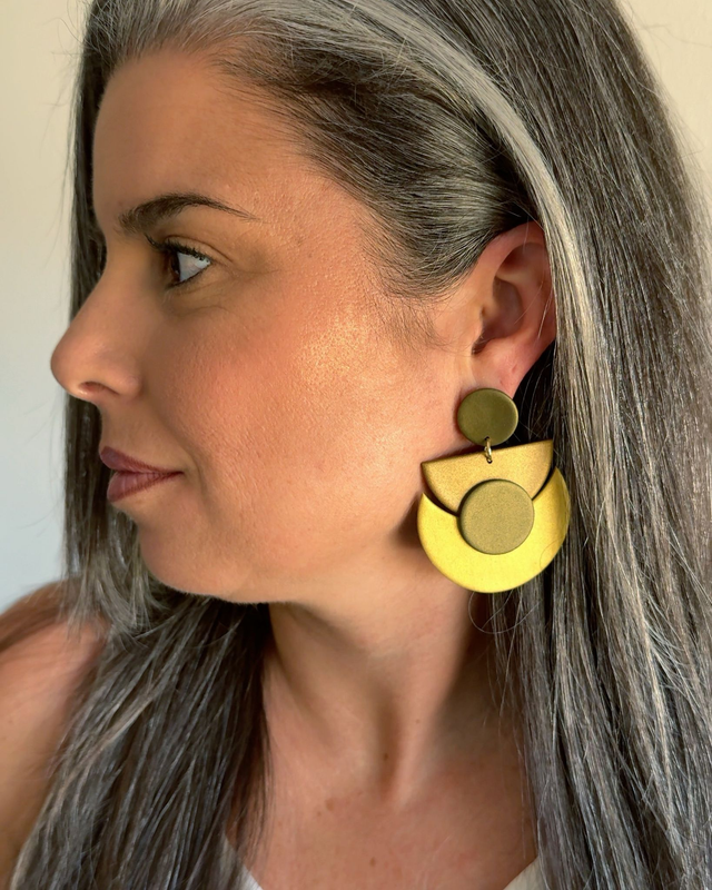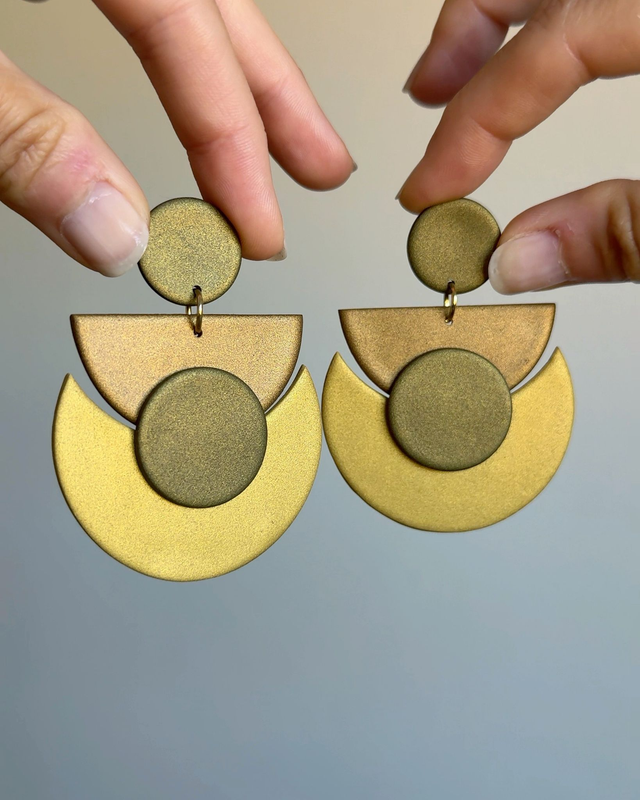 La luna 🌙 como inspiración, las formas geométricas que caracterizan a AnaAtelier y las combinaciones de colores que tanto os gustan, dan paso a unos pendientes con estilo y magnetismo únicos. Éstos en concreto, en distintos tonos de dorado y bronce, son de los más especiales.